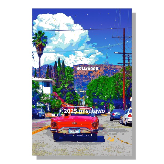 アメリカ ハリウッドサインとクラシックカーを、色鮮やかなグラフィックアートにしたポスターです。 ※額縁は付属しません。 ※受注後印刷になります。 --------------- サイズにより仕様と配送方法が異なります。 ■A4サイズ 配送方法:レターパックライト 用紙:フォト光沢紙 家庭用インクジェットで印刷した商品になります。 ※四方に以下の白フチがあります(おおよその寸法です)。 左右16mm 、上16mm、下29mm ■A3、B3、A2、B2、A1サイズ 配送方法:宅急便 用紙:フォト光沢紙 印刷所にて印刷した商品になります。 印刷所から直送になります。 ※四方に以下の白フチがあります(おおよその寸法です)。 A3:左右22mm 、上22mm、下41mm B3:左右28mm 、上28mm、下50mm A2:左右32mm 、上32mm、下58mm B2:左右39mm 、上39mm、下71mm A1:左右45mm 、上45mm、下82mm なお、A3、B3、A2、B2サイズは白フチなしも選択できます。 --------------- 画像には「©2025 misutawo」の著作権表示がありますが、お送りする作品には記載されておりません。 モニターの発色を印刷では完全に再現できない為、画像と実物の色合いが若干異なります。 ご了承下さいますようお願い致します。 #ポスター #A4 #A3 #A2 #B3 #B2 #アートポスター #ポップ #アート #イラスト #カラフル #ビビッド #明るい #鮮やか #爽やか #リラックス #インテリア #シティポップ #風景 #景色 #旅行 #アメリカ #カリフォルニア #ロサンゼルス #LA #ハリウッド #街 #街並み #車 #自動車 #アメ車 #クラシックカー #ヴィンテージカー #レトロカー #フォード #サンダーバード #オープンカー #ハリウッドサイン #道路 #交通 #ヤシの木 #ビーチウッドドライブ #アメリカン