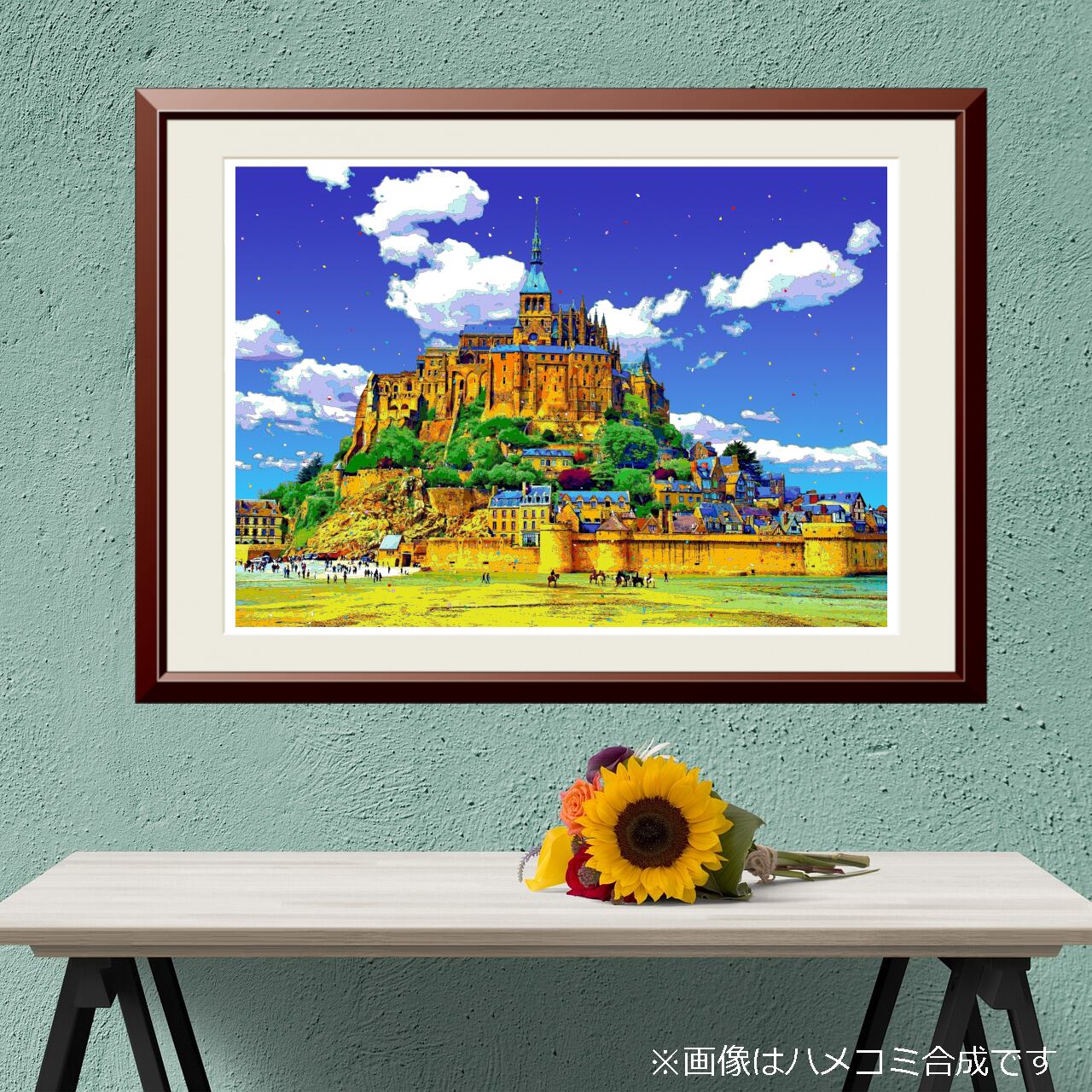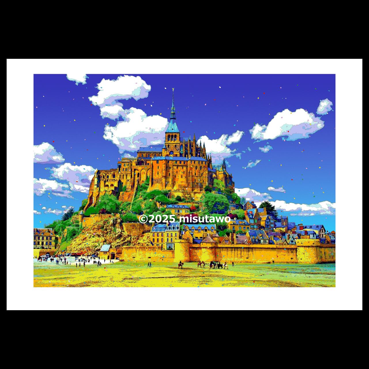 フランス 光彩のモン・サン=ミシェルを、色鮮やかなグラフィックアートにしたポスターです。