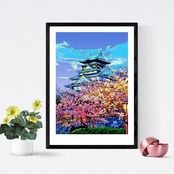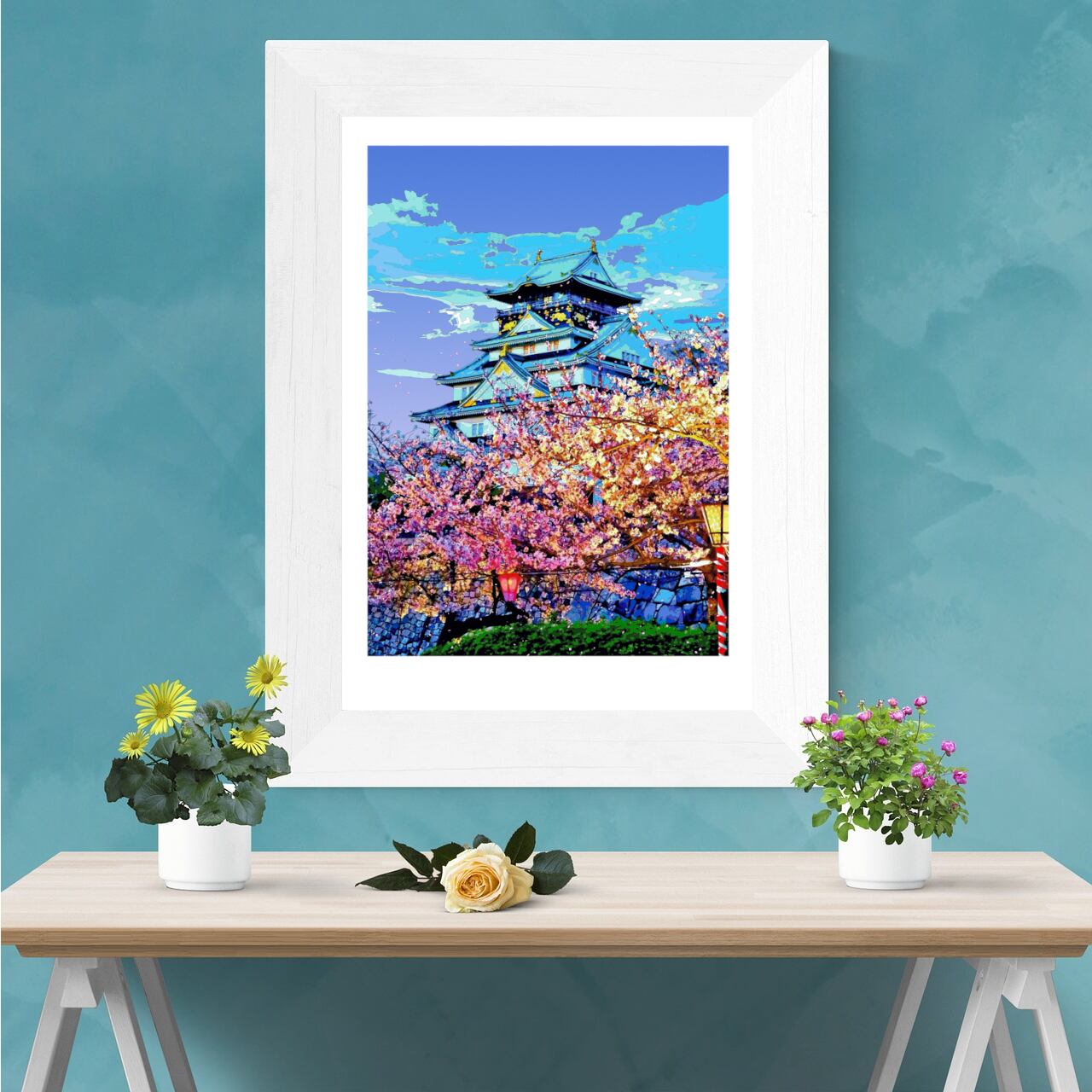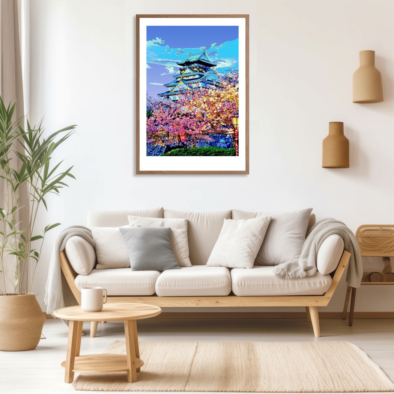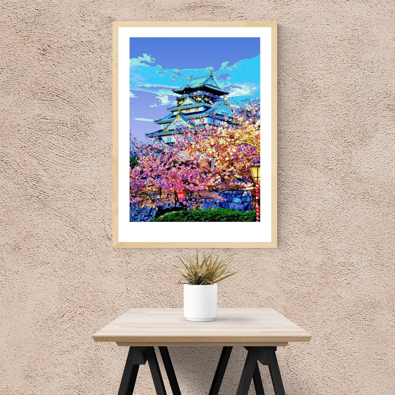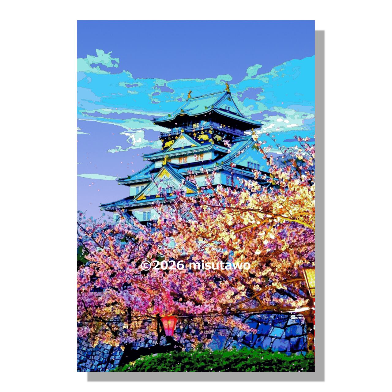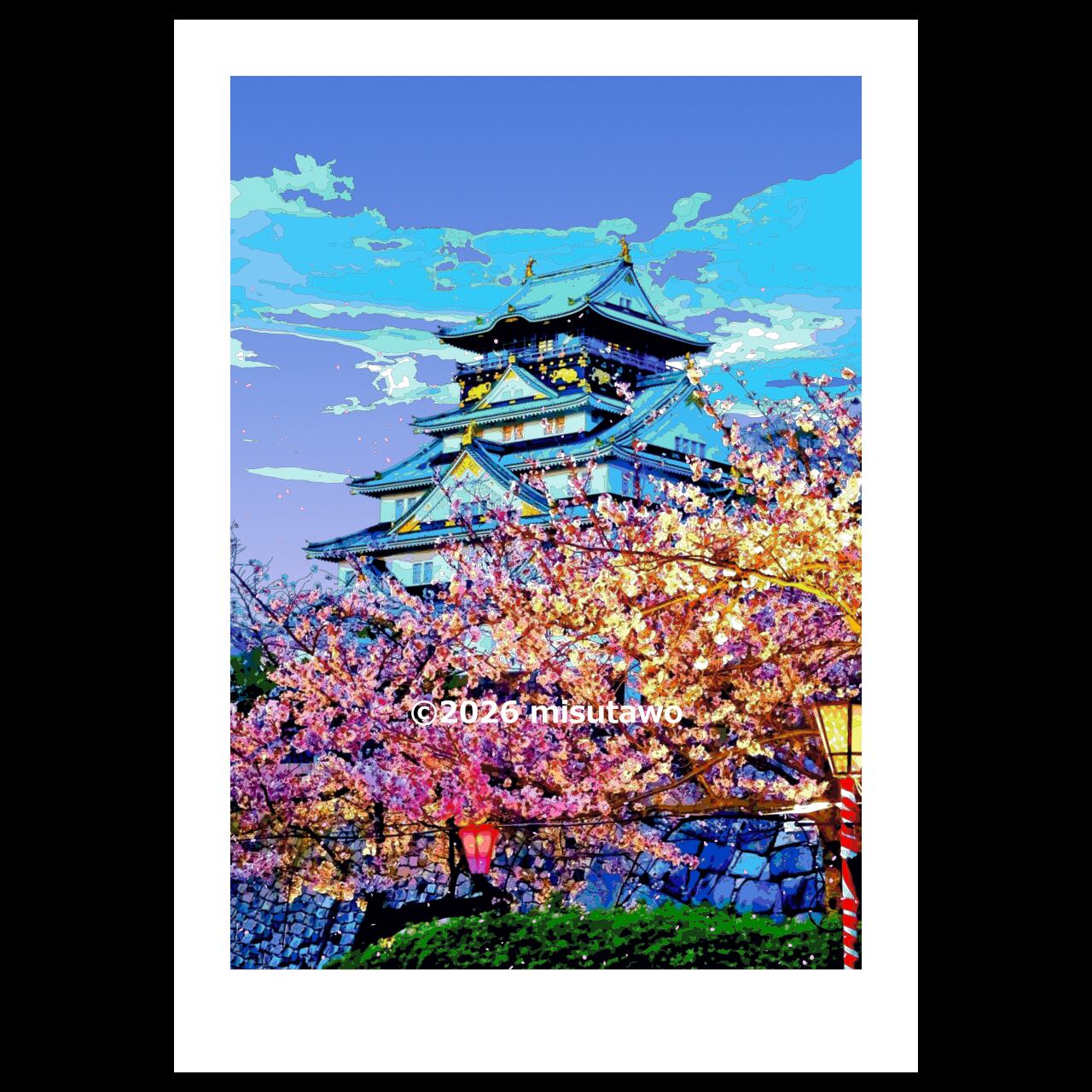 春宵の大阪城を、色鮮やかなグラフィックアートにしたポスターです。