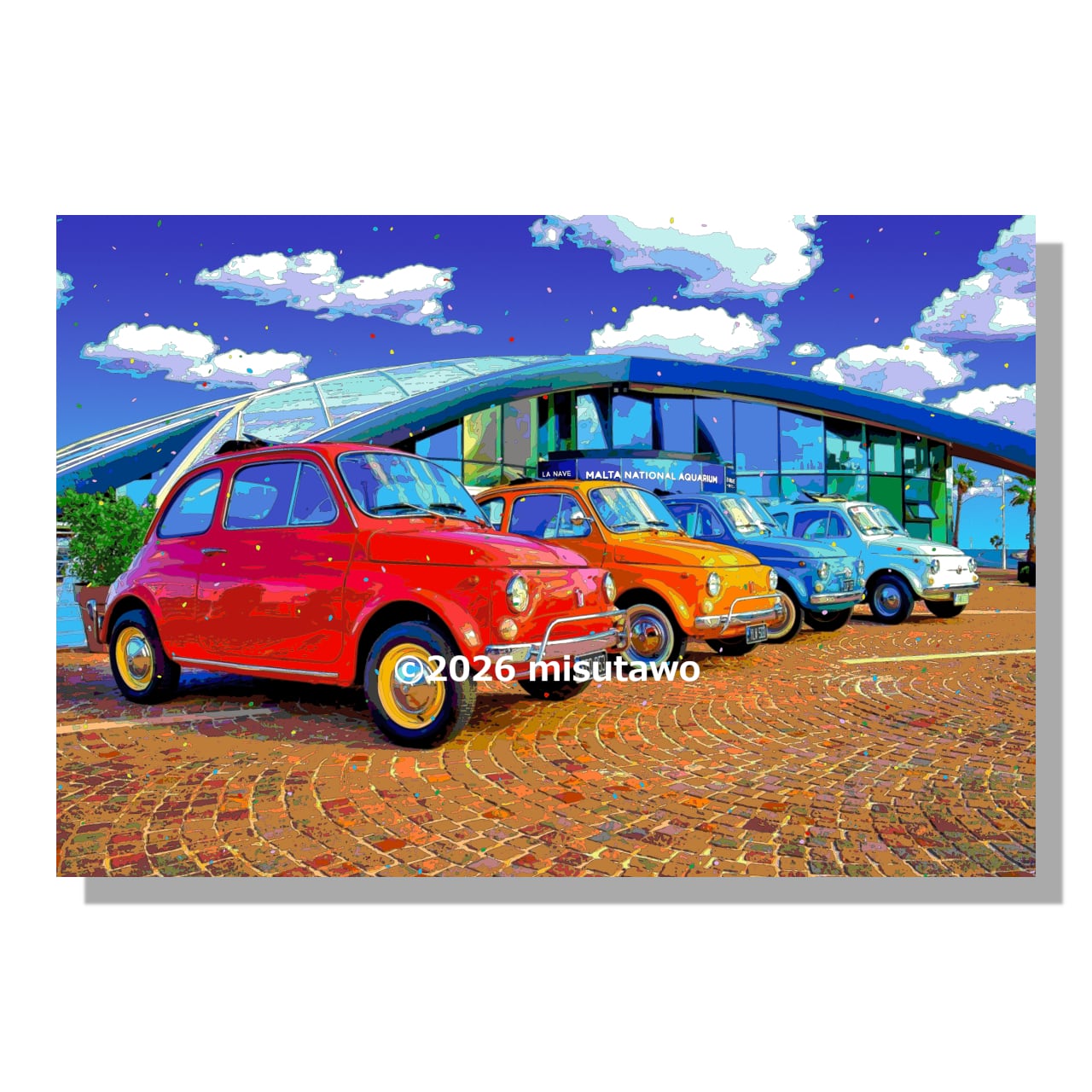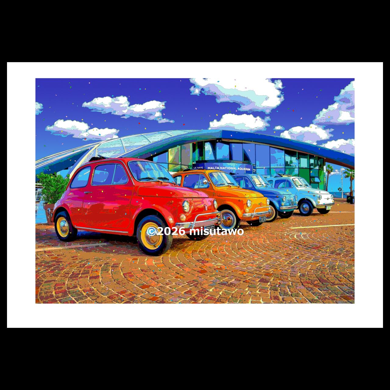 以前公開した「カラフルなFIAT500(チンクエチェント)(作品No.108)」を再構成し、リメイクした作品になります。