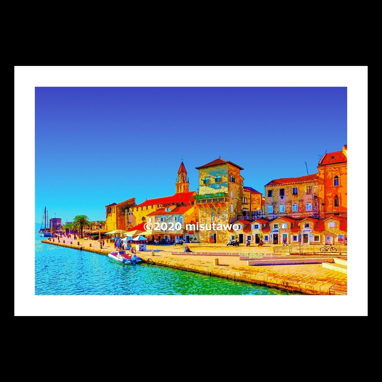 クロアチア トロギルの風景を、色鮮やかなグラフィックアートにしたポスターです。