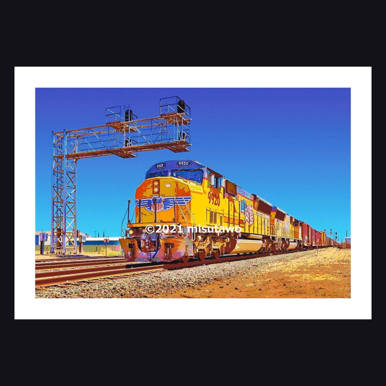 アメリカ カリフォルニア州の貨物列車を、色鮮やかなグラフィックアートにしたポスターです。