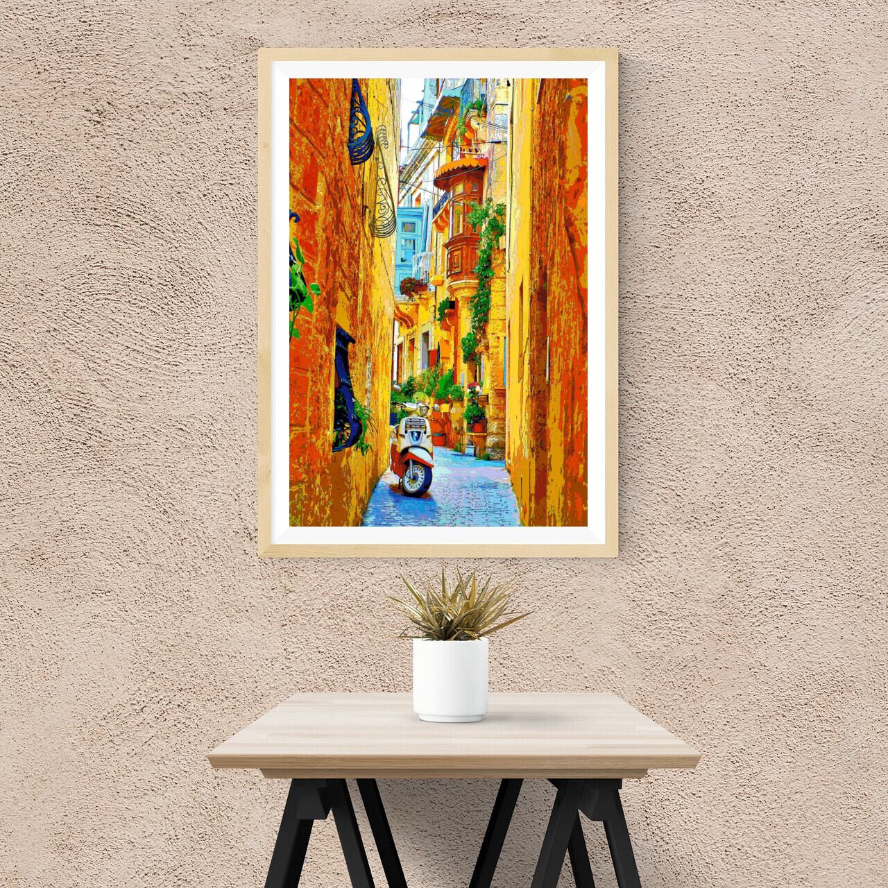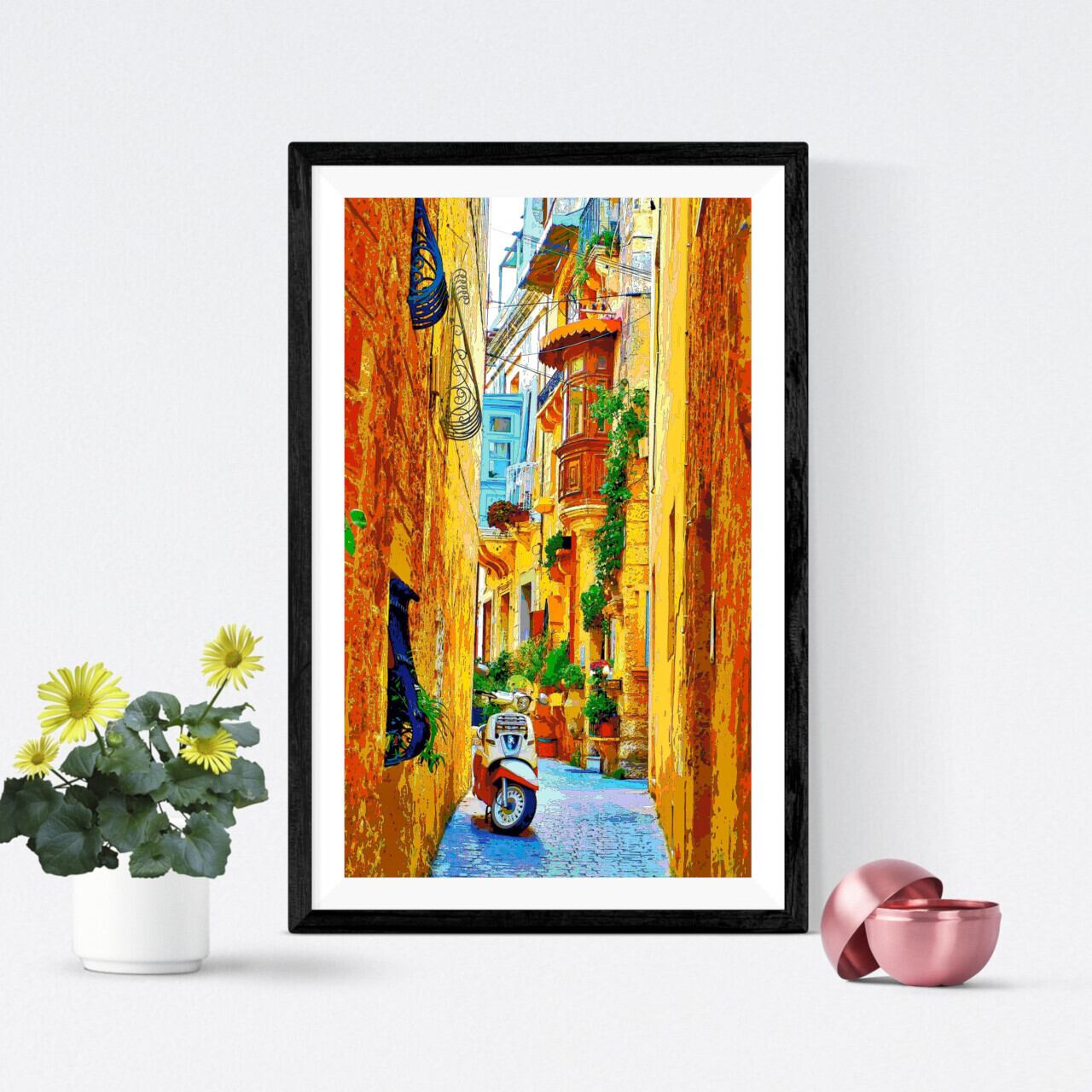 イタリア マルタ島の小道を、色鮮やかなグラフィックアートにしたポスターです。