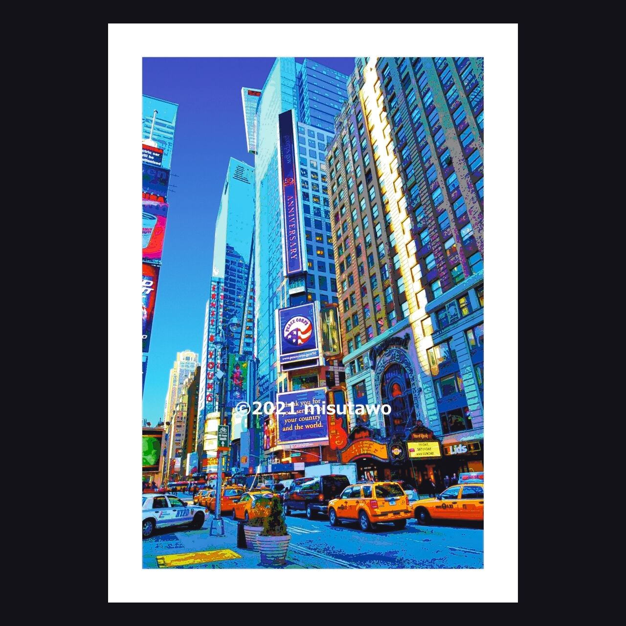 アメリカ ニューヨーク7thアベニューの風景を、色鮮やかなグラフィックアートにしたポスターです。