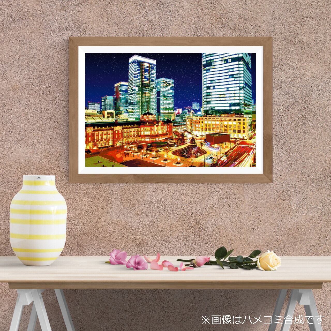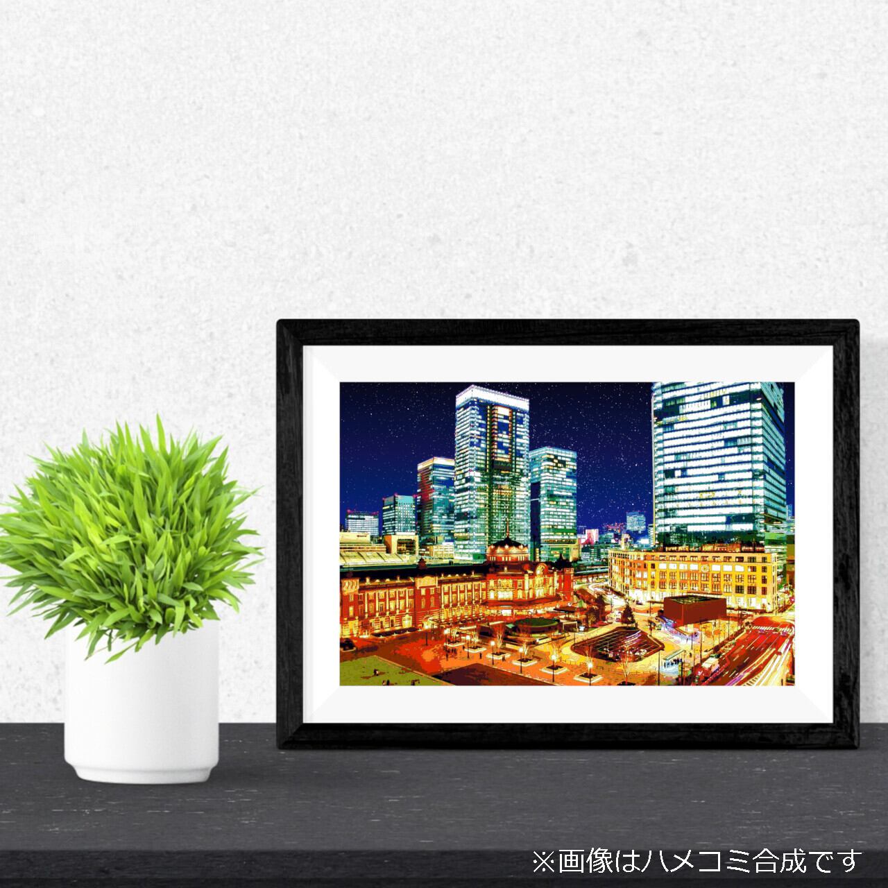 夜の東京駅を色鮮やかなグラフィックアートにしたポスターです。