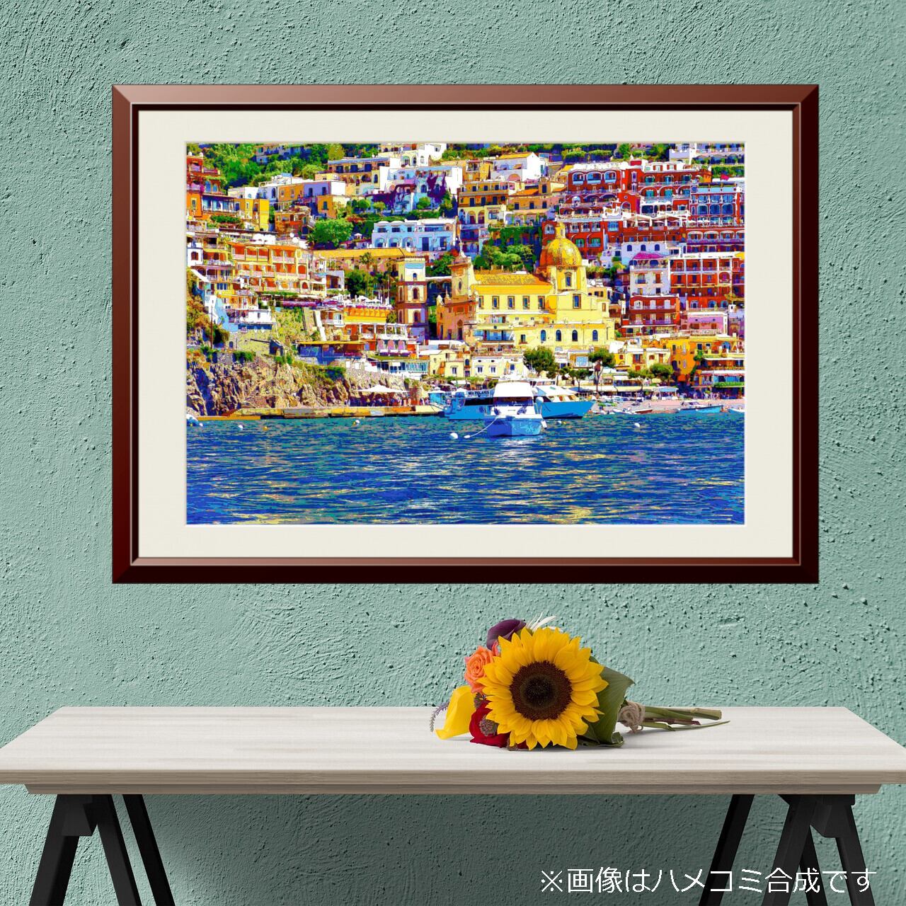 【アートポスター】イタリア ポジターノの海岸とサンタ・マリア・アッスンタ教会(作品No.256)