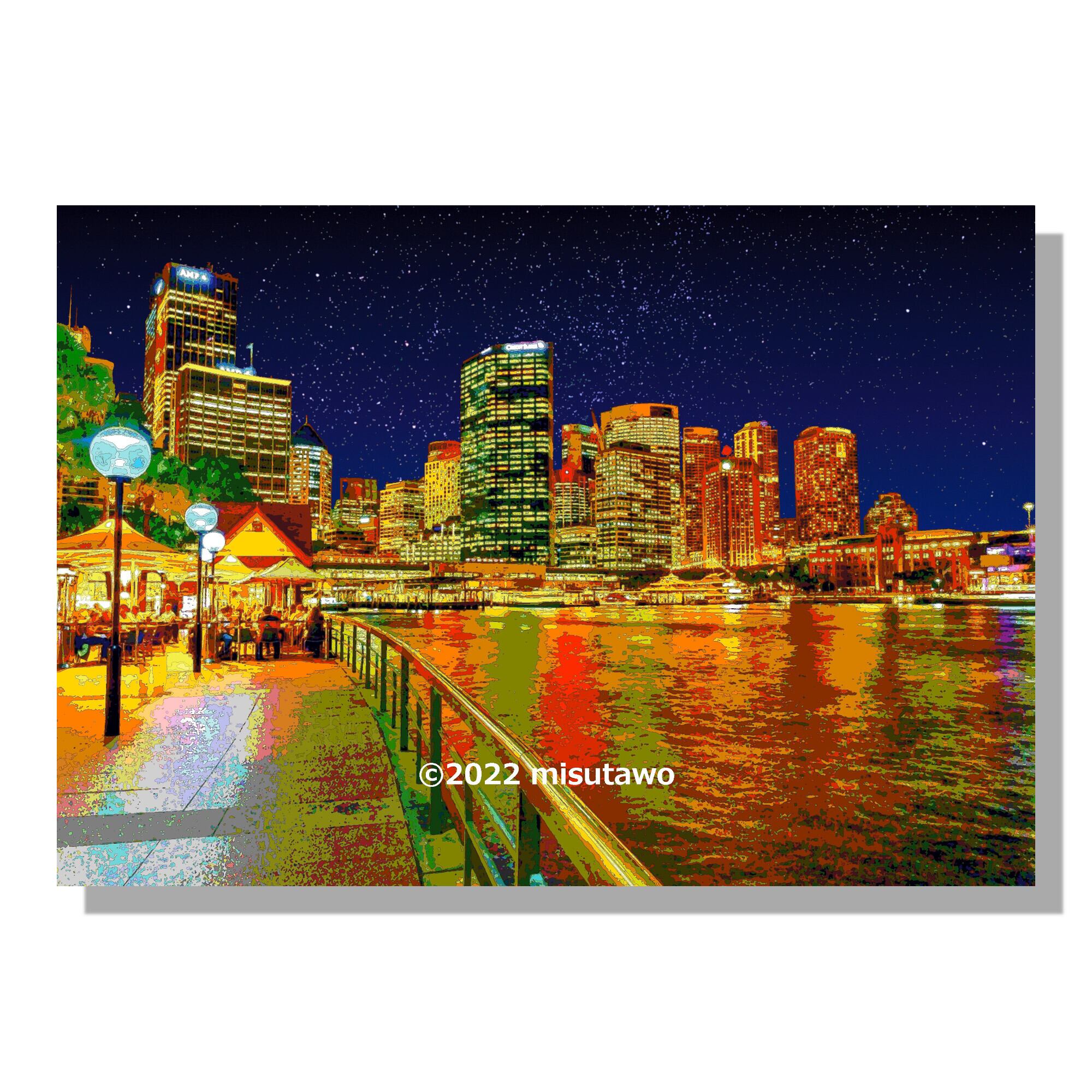 オーストラリア シドニーの夜を、色鮮やかなグラフィックアートにしたポスターです。