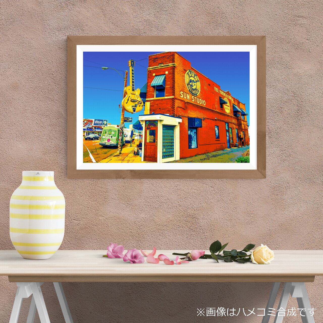 アメリカ テネシー州メンフィスの音楽スタジオを、色鮮やかなグラフィックアートにしたポスターです。