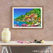 イタリア コモ湖周辺の街バレンナの風景を、色鮮やかなグラフィックアートにしたポスターです。