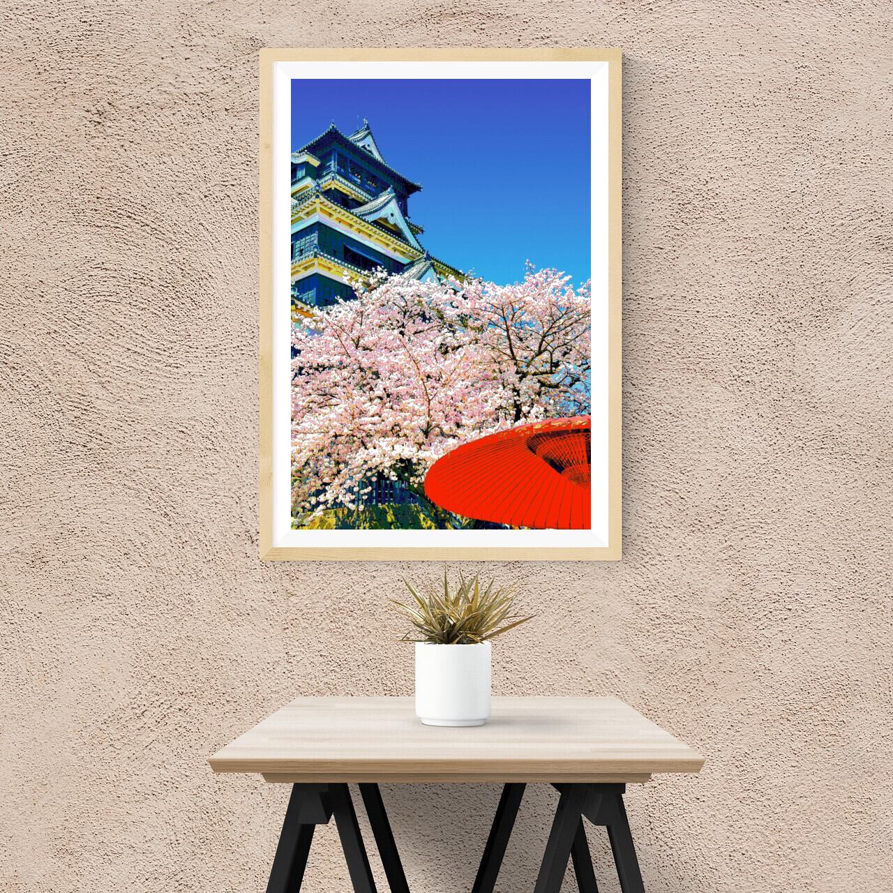 春の熊本城を、色鮮やかなグラフィックアートにしたポスターです。