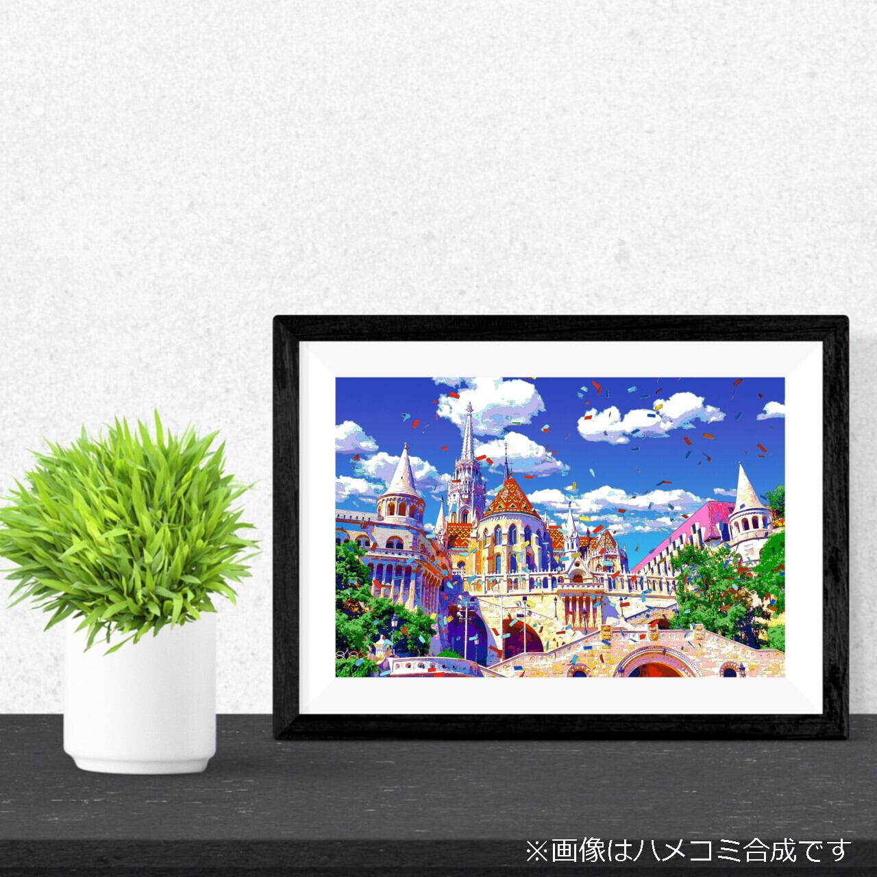 ハンガリー ブダペストのマーチャーシュ聖堂を、色鮮やかなグラフィックアートにしたポスターです。