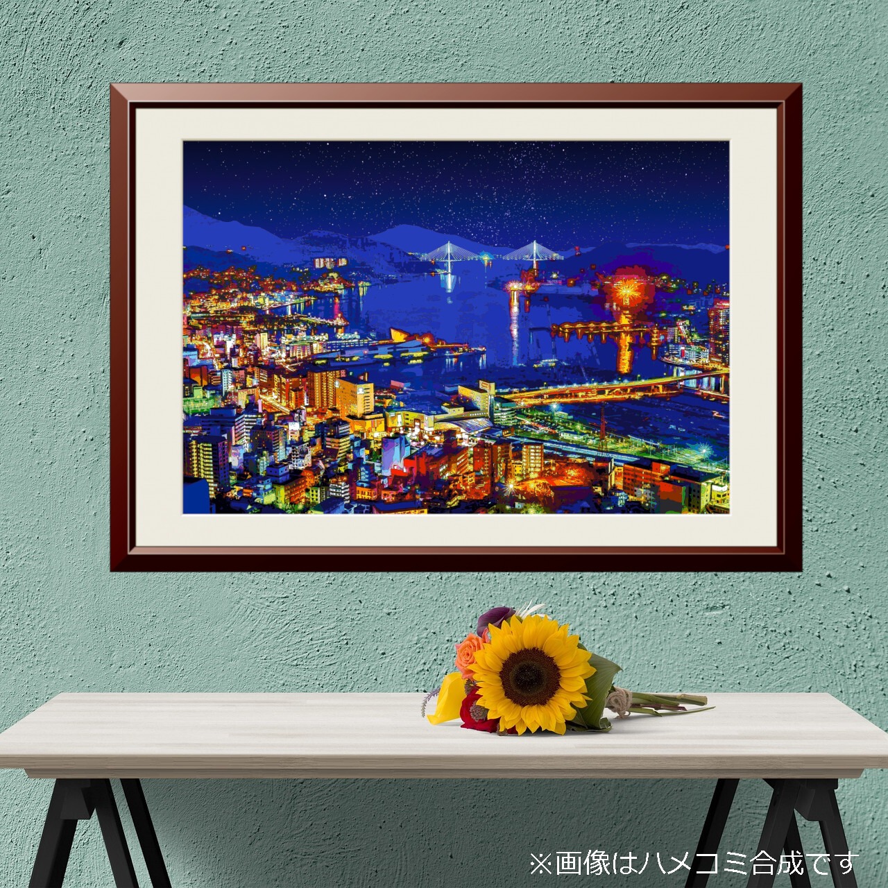 長崎の夜景を、色鮮やかなグラフィックアートにしたポスターです。