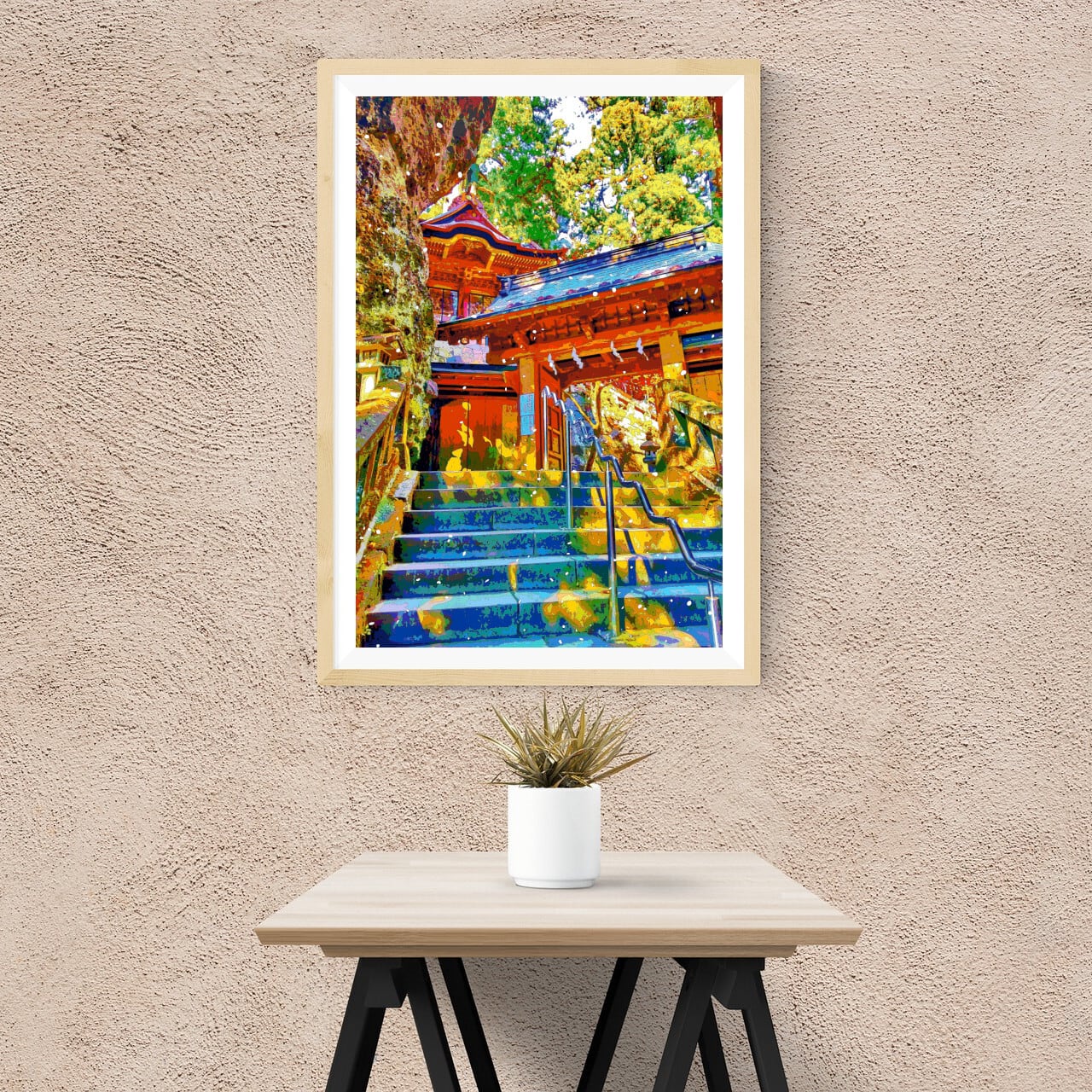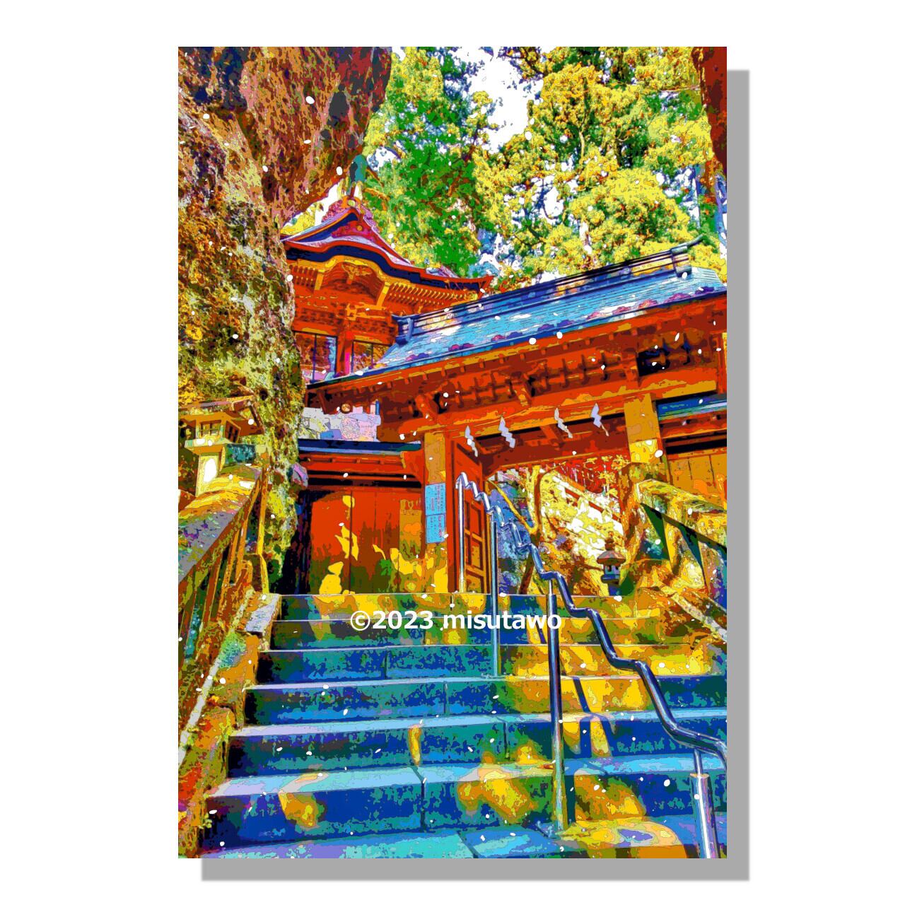群馬 榛名神社の神門と双龍門を、色鮮やかなグラフィックアートにしたポスターです。